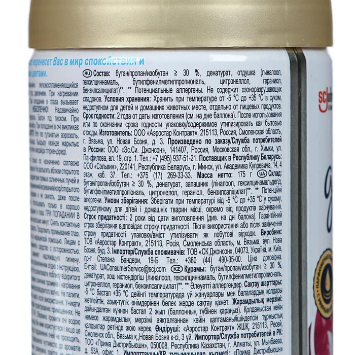 Сменный баллон предназначен для использования в специальном автоматическом распылителе Glade. Он эффективно устраняет неприятные запахи и освежает воздух в помещении, наполняя его умиротворяющим фруктово-цветочным ароматом. Можно использовать в любом помещении, включая санузел. При распылении с 36-минутным интервалом одного баллона хватает на 60 дней.