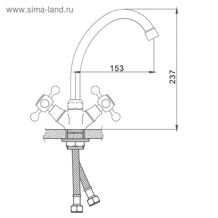 Компактный двухрычажный смеситель с коротким поворотным изливом устанавливается на мойку. Современная хромовая сантехника станет украшением любой кухни.