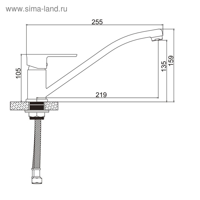 Смеситель для кухни ZEIN Z50151, однорычаж., картридж 35 мм, излив 15 см, без подводки, хром