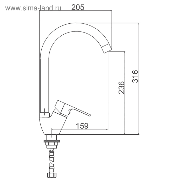 Смеситель для кухни Accoona A4467M, однорычажный, с гайкой, силумин, цвет бирюза