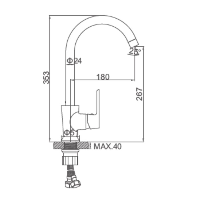 Смеситель для кухни Accoona A4566P, однорычажный, с гайкой, оранжевый