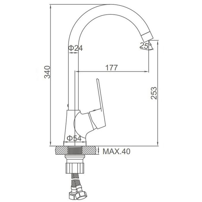 Смеситель для кухни ZEIN Z50151, однорычаж., картридж 35 мм, излив 15 см, без подводки, хром