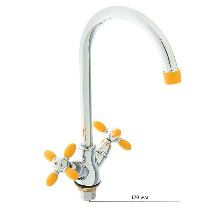 Смеситель для кухни Accoona A4582H, двухрычажный, высокий излив, желтый/хром