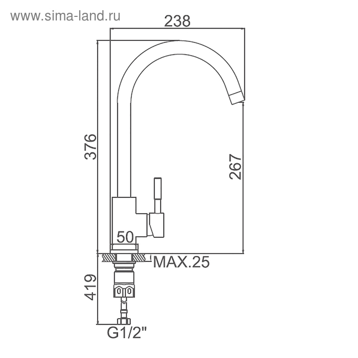 Смеситель для кухни ZEIN Z50151, однорычаж., картридж 35 мм, излив 15 см, без подводки, хром