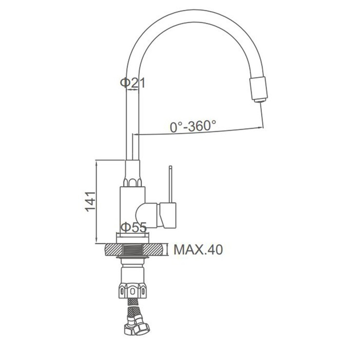 Смеситель для кухни ZEIN Z66350352, гибкий излив, картридж 40 мм, двухрежимный аэратор, хром