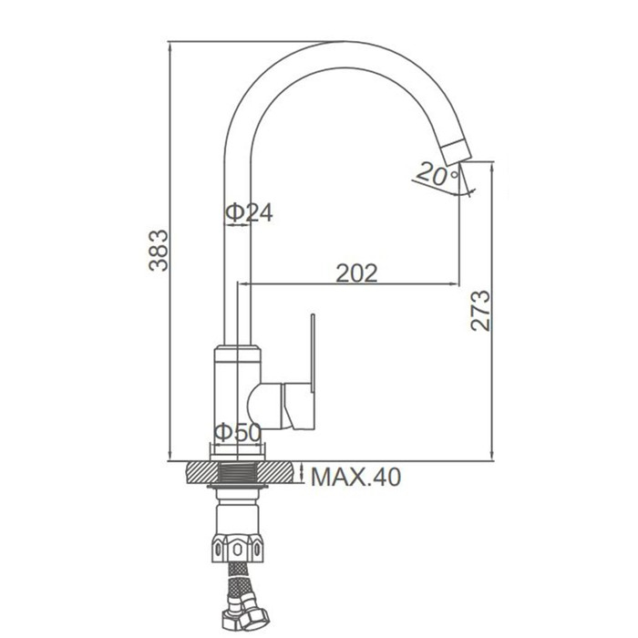 Смеситель для кухни ZEIN Z50151, однорычаж., картридж 35 мм, излив 15 см, без подводки, хром