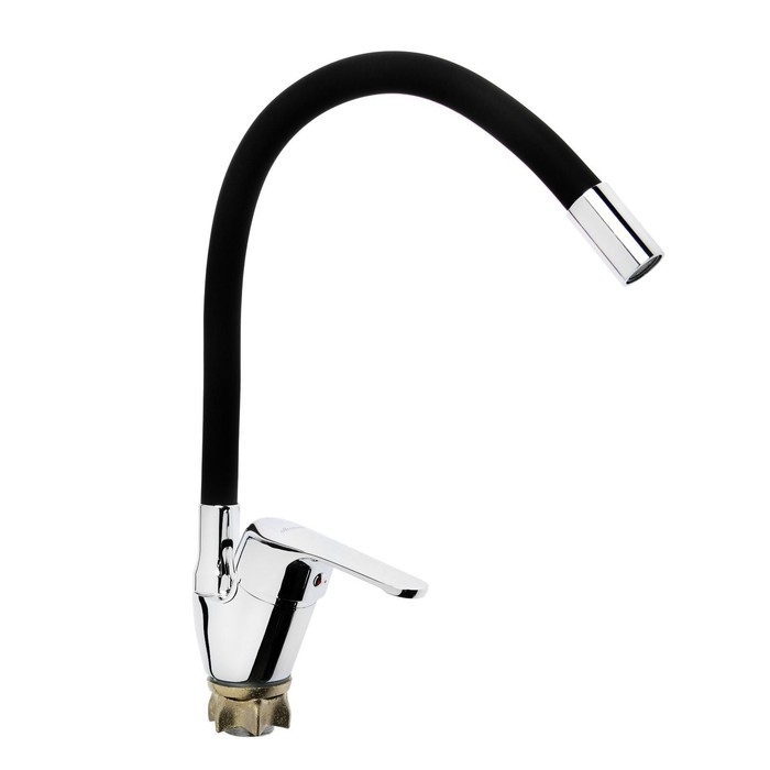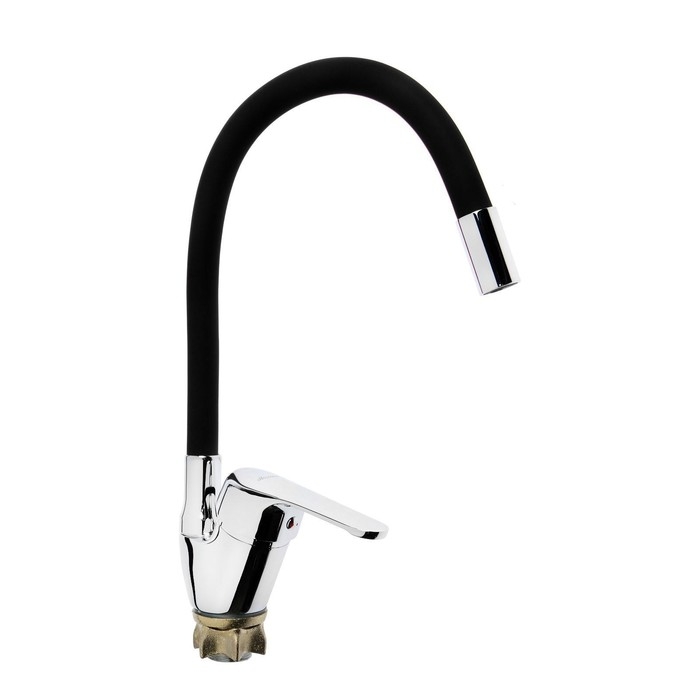 Смеситель для кухни Accoona A4844F, однорычажный, силиконовый излив, силумин, черный/хром