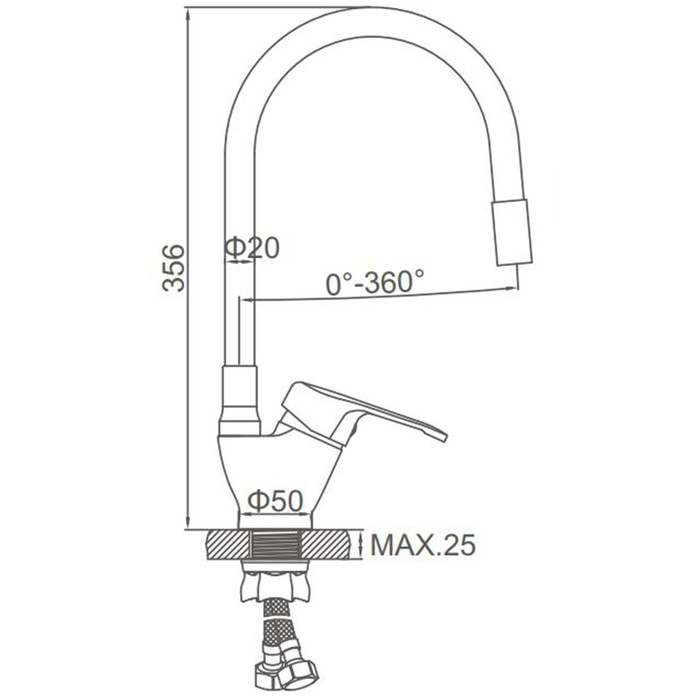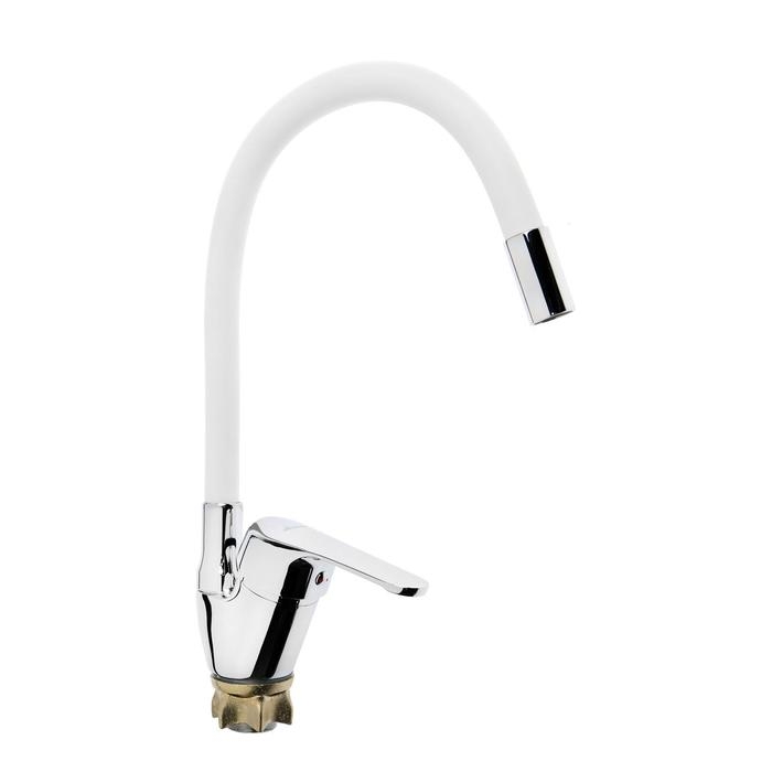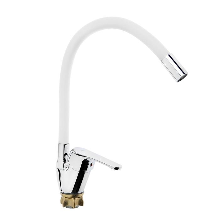Смеситель для кухни Accoona A4844G, однорычажный, силиконовый излив, силумин, белый/хром