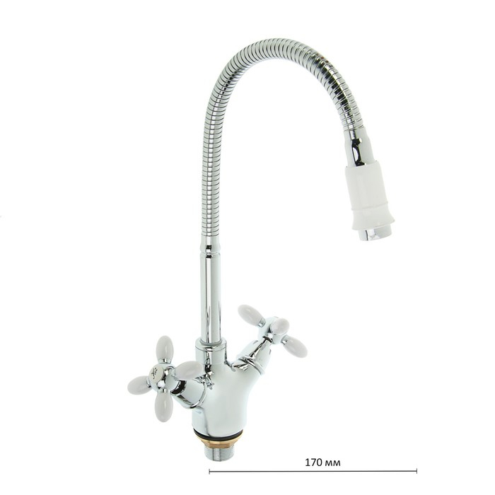 Смеситель для кухни Accoona A4882G, двухрычажный, с гибким изливом, белый/хром