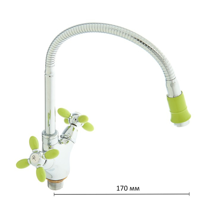 Смеситель для кухни Accoona A4882K, двухрычажный, с гибким изливом, зеленый/хром