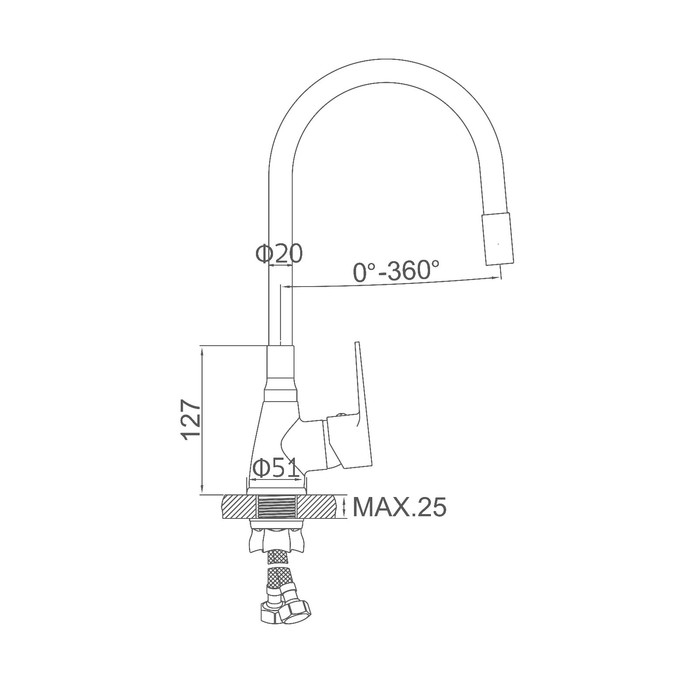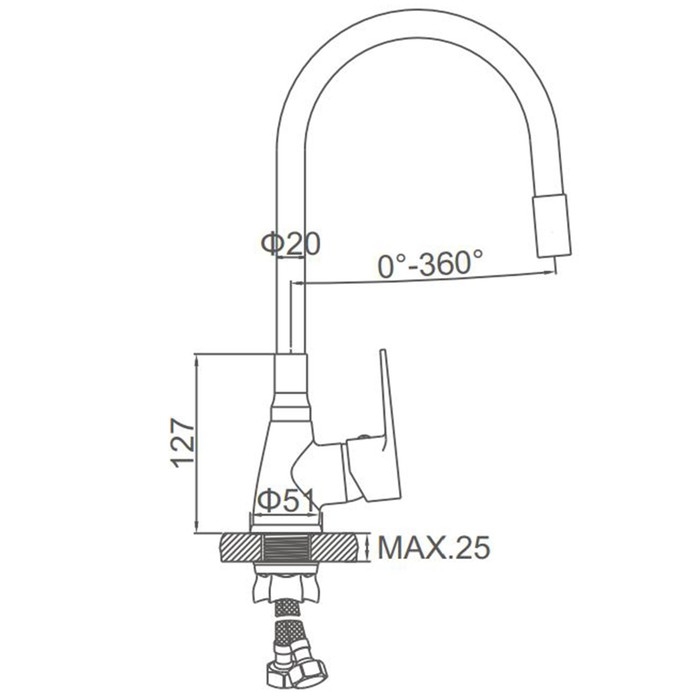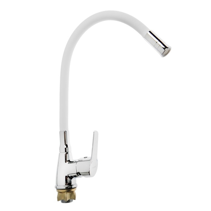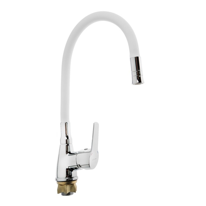 Смеситель для кухни Accoona A4890G-5, однорычажный, гибкий излив, белый/хром