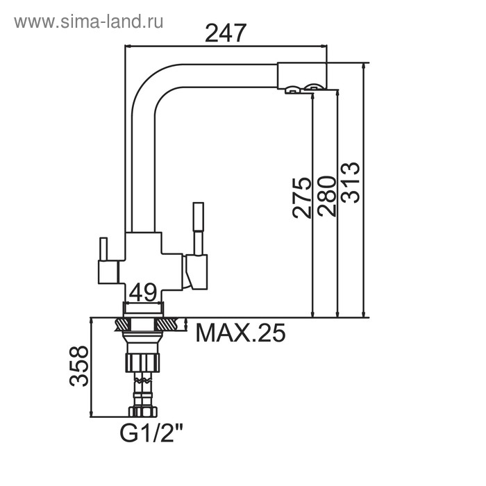 Смеситель для кухни Accoona А5179-4, с краном для питьевой воды, однорычажный, хром
