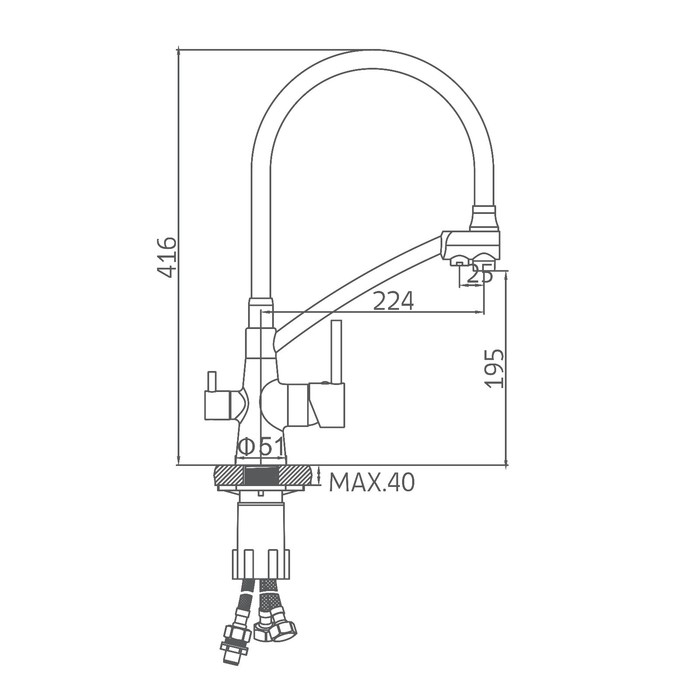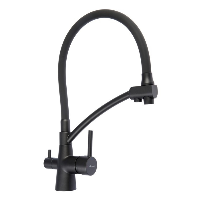 Смеситель для кухни Accoona A5179TT-13, однорычажный, гибкий излив, выход на питьевую, серый