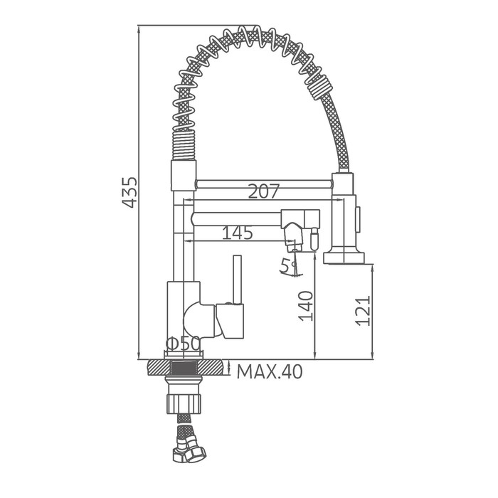 Смеситель для кухни Accoona A5490-7, однорычажный, гибкий излив, хром