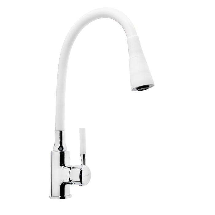 Смеситель для кухни Accoona A9890G-1, однорычажный, силиконовый излив, белый/хром