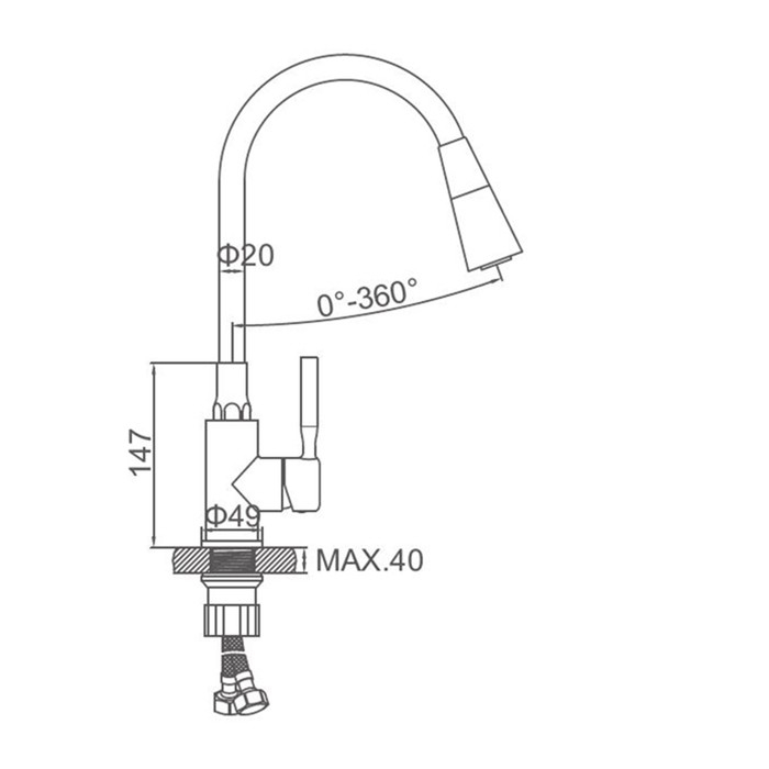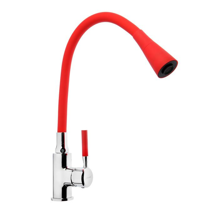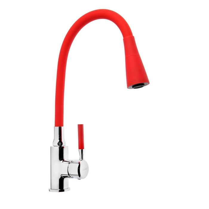 Смеситель для кухни Accoona A9890N-1, однорычажный, силиконовый излив, красный/хром
