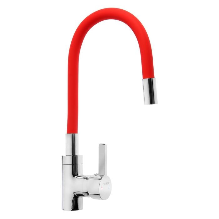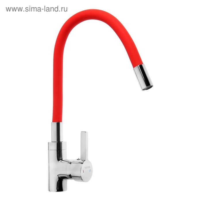 Смеситель для кухни Mira 5098-1, однорычажный, картридж 35 мм, гибкий излив, хром/красный