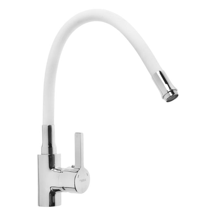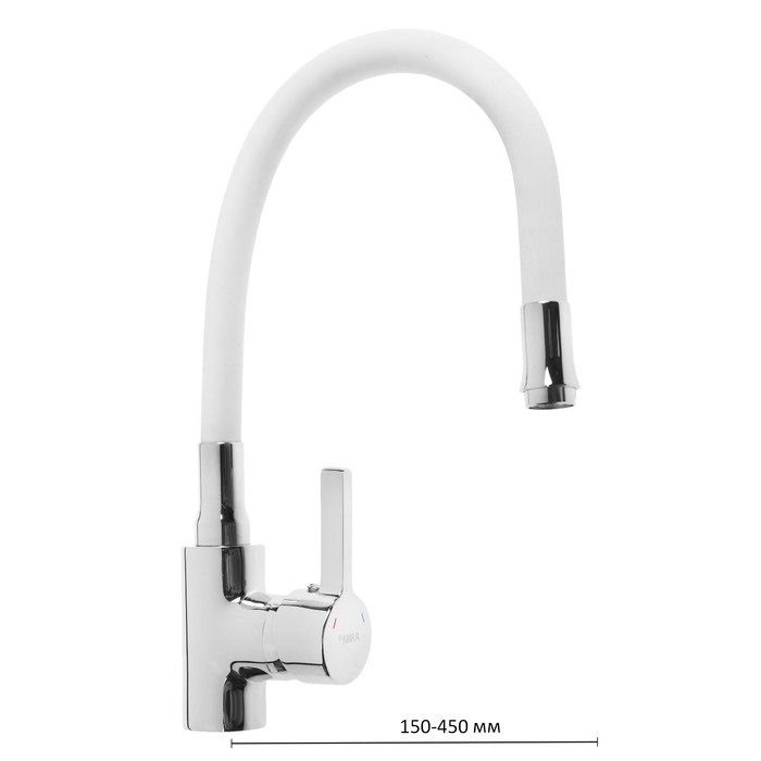 Смеситель для кухни Mira 5098-3, однорычажный, картридж 35 мм, гибкий излив, хром/белый