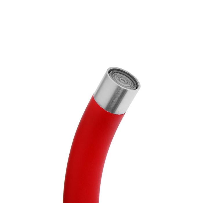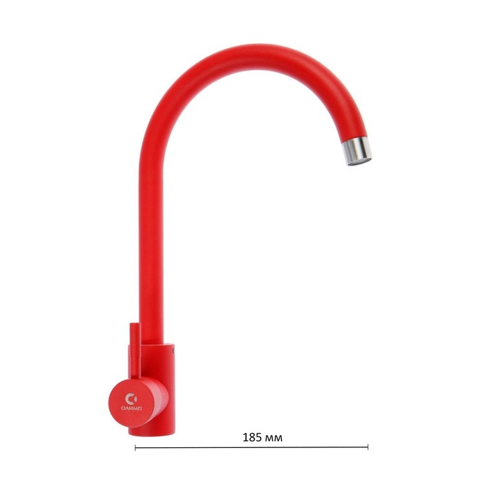 Смеситель для кухни "ОЛИМП" ОС66923, однорычажный, высокий излив, нержавеющая сталь, красный