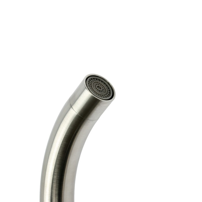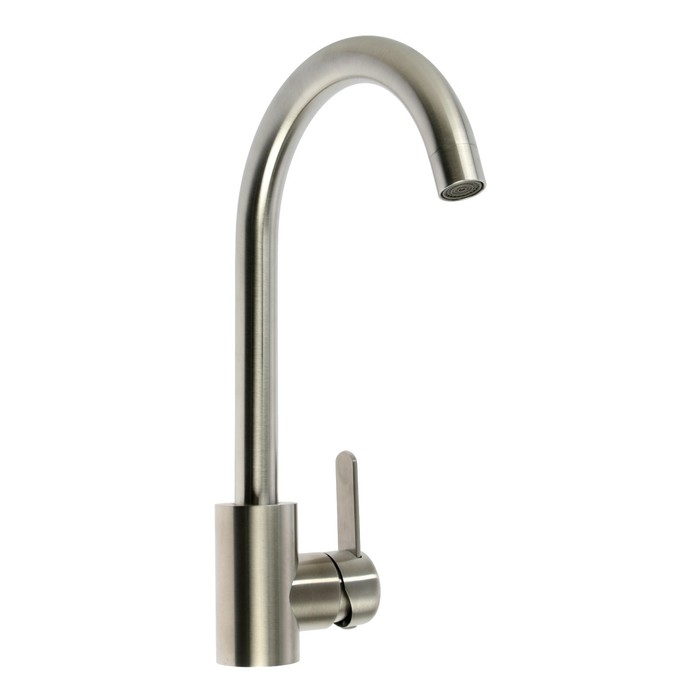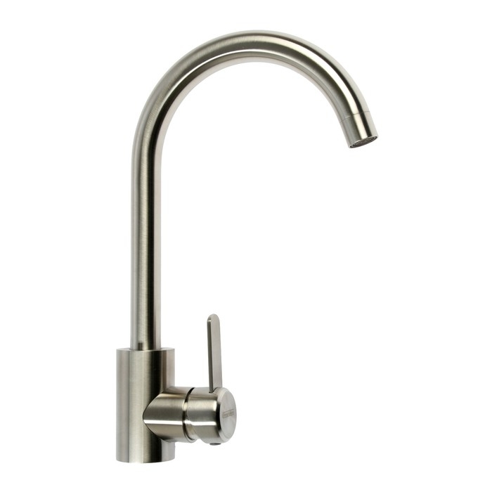 Смеситель для кухни СоюзКран изготовлен из нержавеющей стали и предназначен для установки на горизонтальной поверхности — кухонной мойке или столешнице.