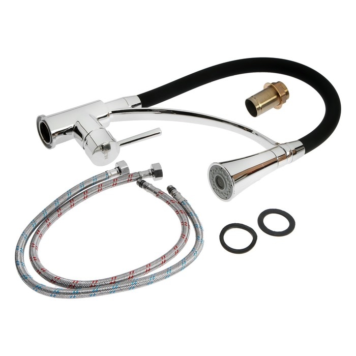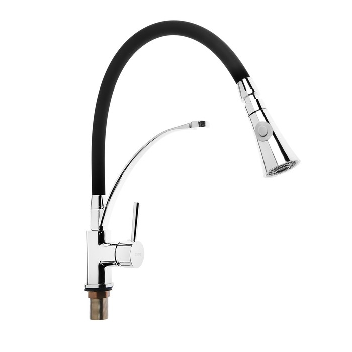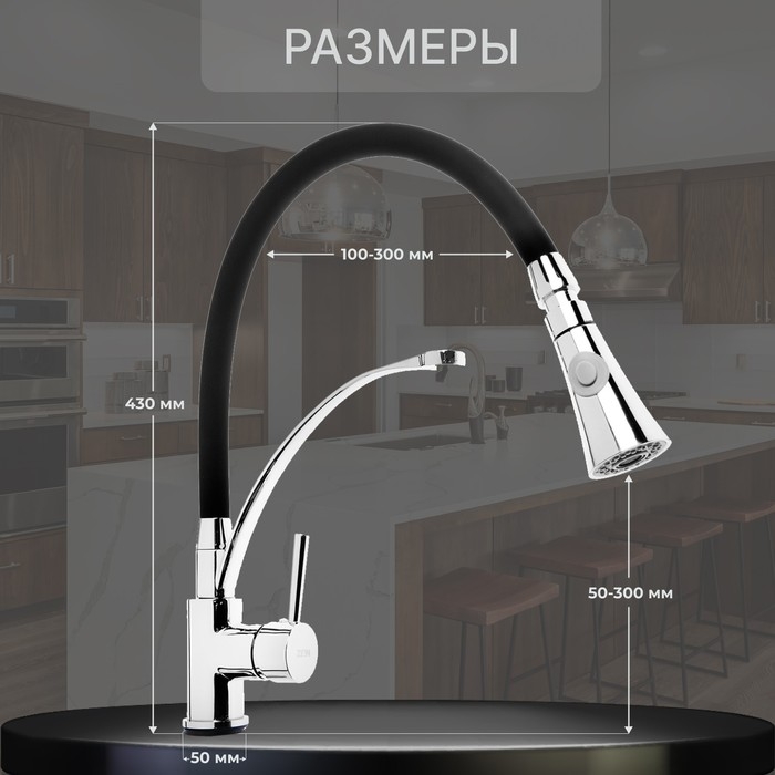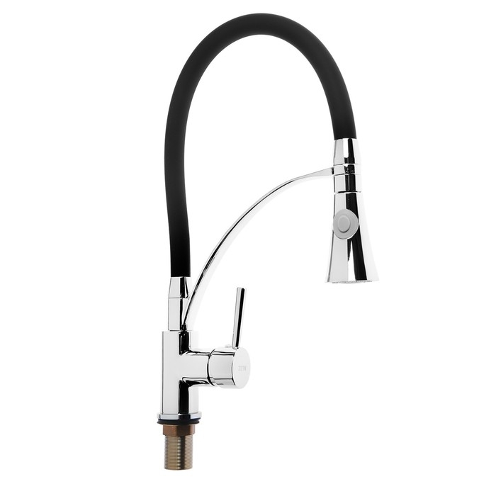 Смеситель для кухни ZEIN, гибкий излив, картридж керамика 40 мм, латунь, хром/черный