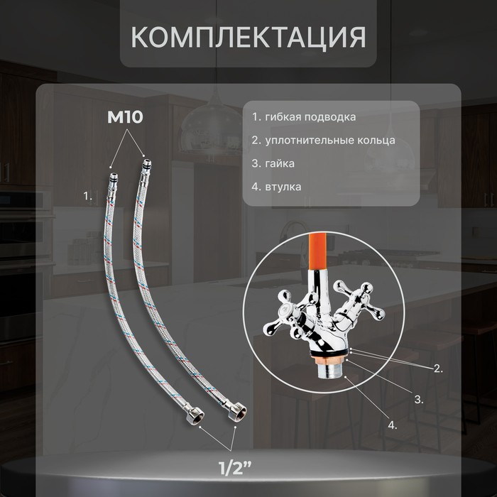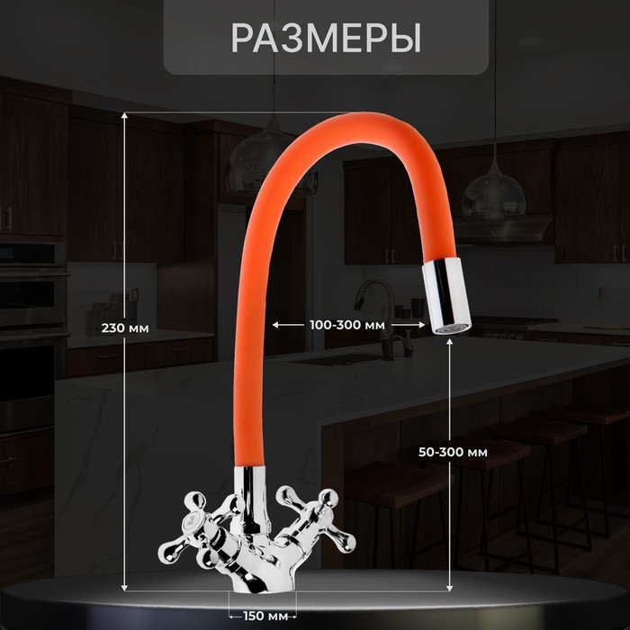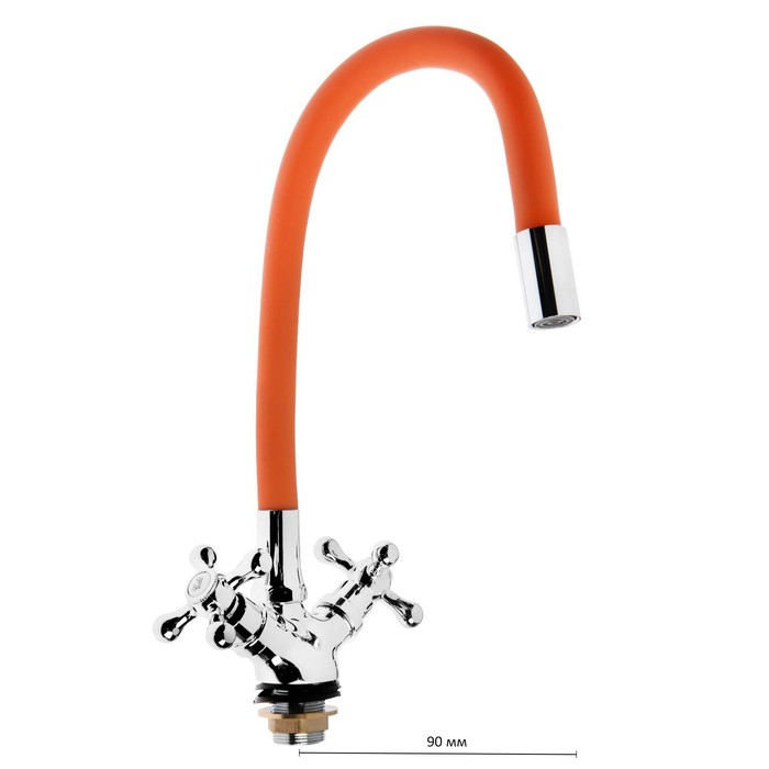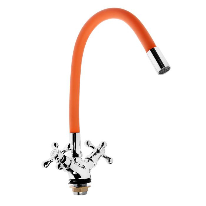 Смеситель для кухни ZEIN Z2107, двухвентильный, силиконовый излив, оранжевый/хром