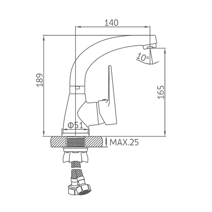 Смеситель для раковины ZEIN Z4070, картридж 35 мм, длина излива 12 см, нерж. сталь, сатин