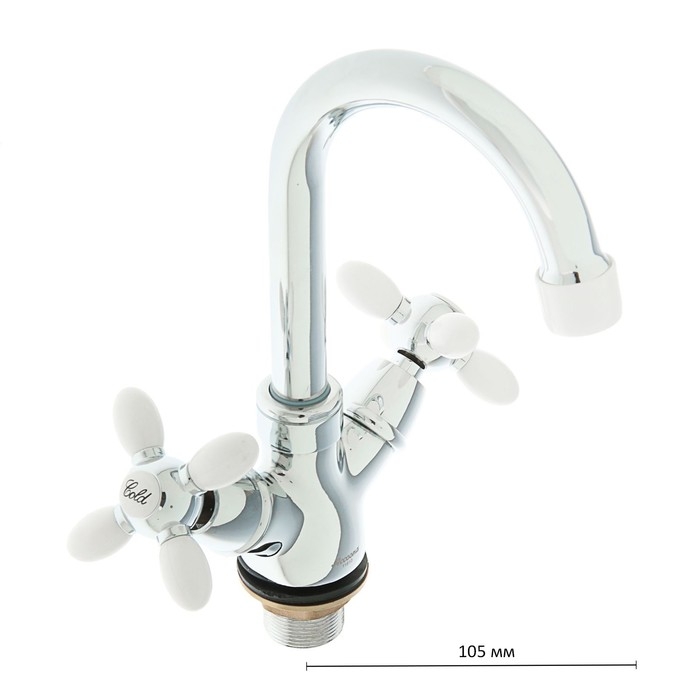 Смеситель для раковины Accoona A9482G, двухрычажный, с гайкой, белый/хром