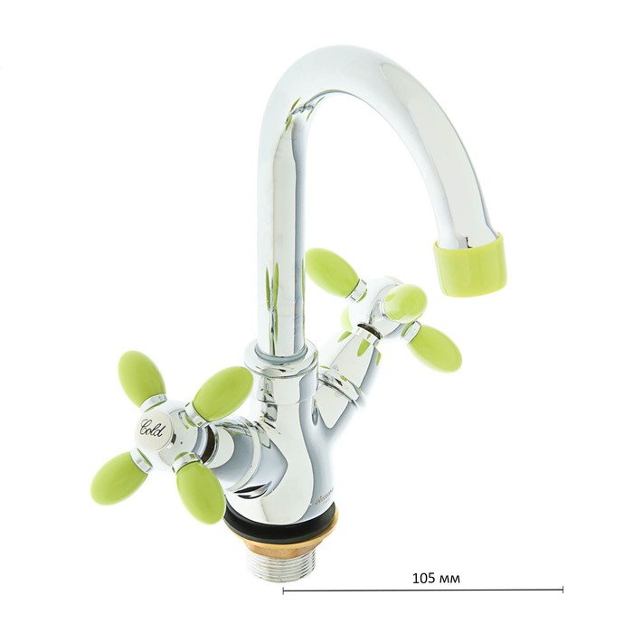 Смеситель для раковины Accoona A9482K, двухрычажный, с гайкой, зеленый/хром