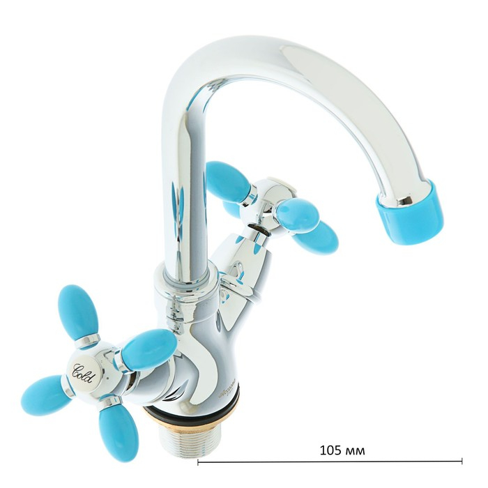 Смеситель для раковины Accoona A9482M, двухрычажный, с гайкой, синий/хром