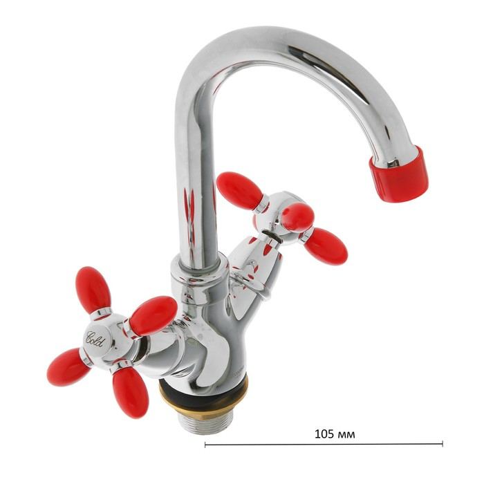Смеситель для раковины Accoona A9482N, двухвентильный, с гайкой, силумин, красный/хром