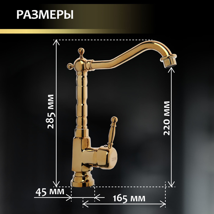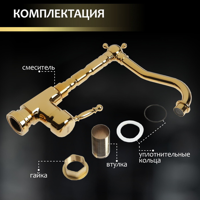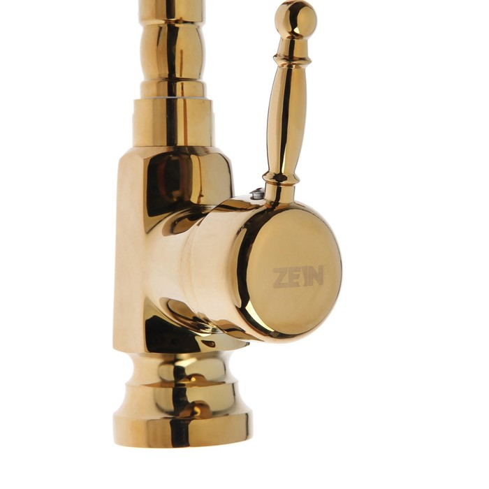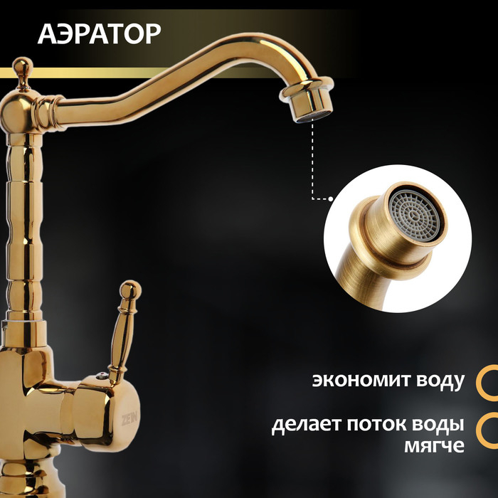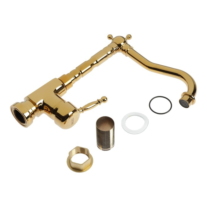 Смеситель для раковины ZEIN Ретро, высокий излив, без подводки, латунь, цвет золото