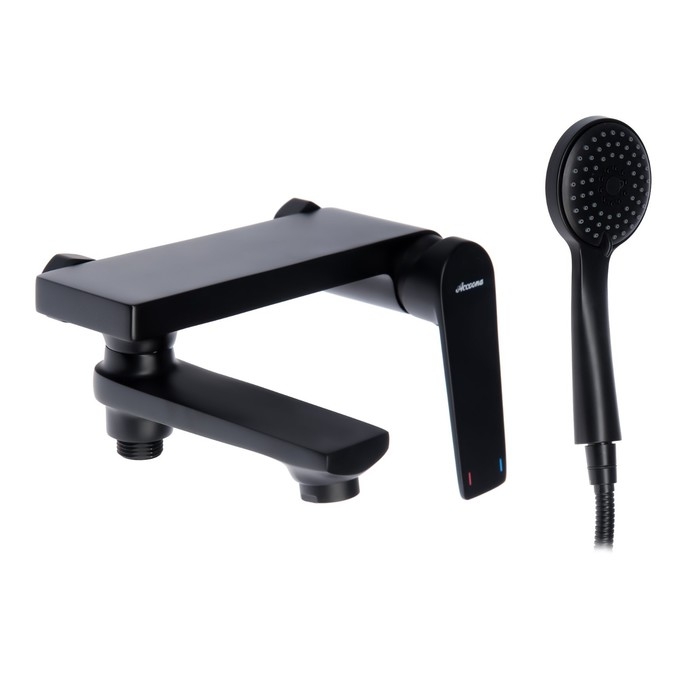 Смеситель для ванны Accoona A63125F, однорычажный, излив 181 мм, душевой набор, черный