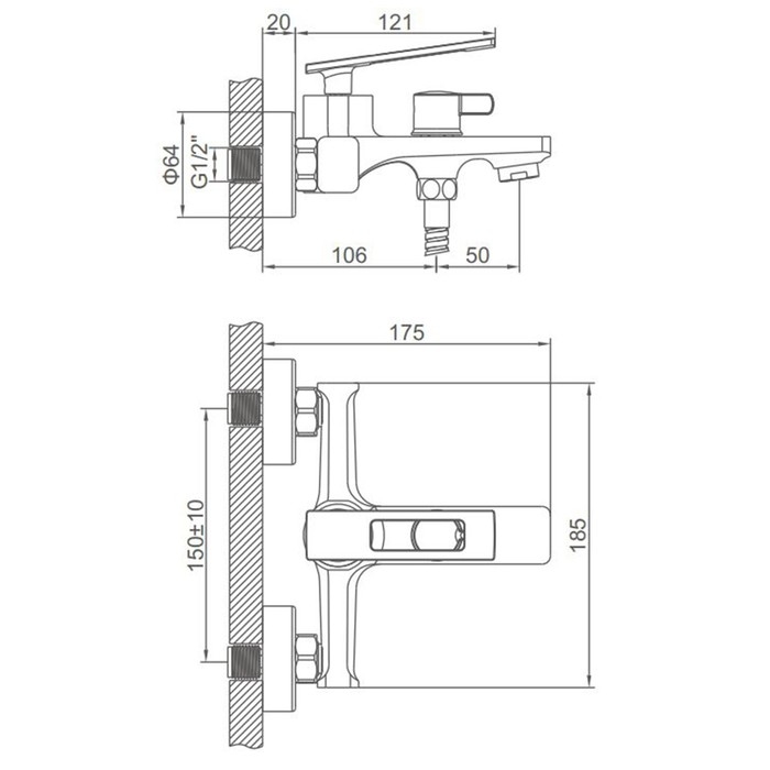 Смеситель для ванны Accoona A63127AT, однорычажный, излив 175 мм, душевой набор, черный