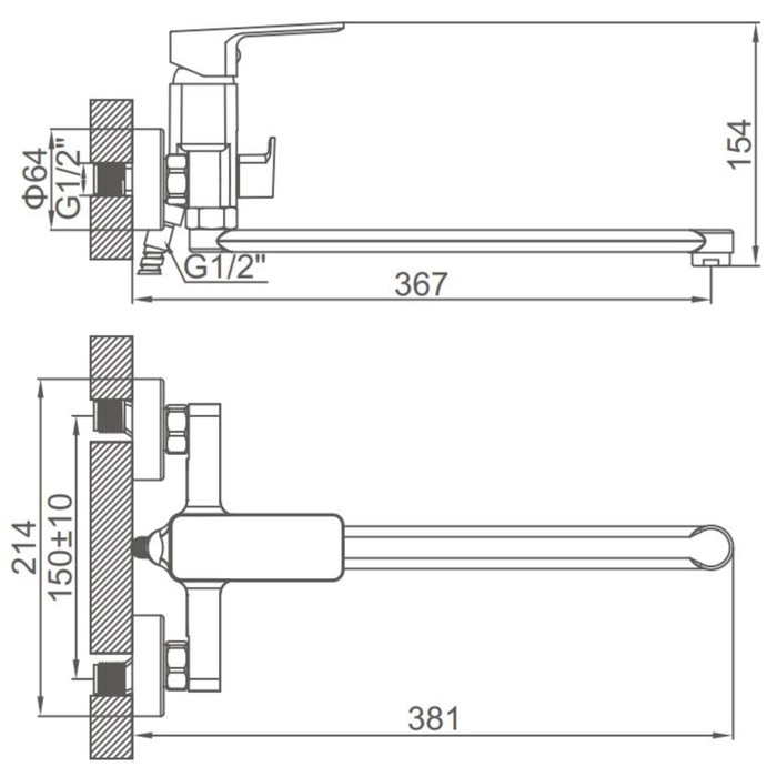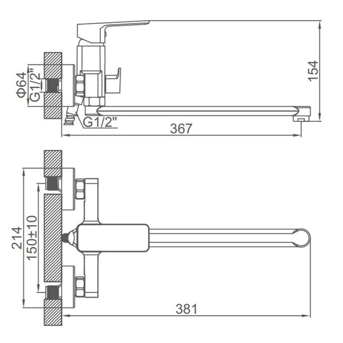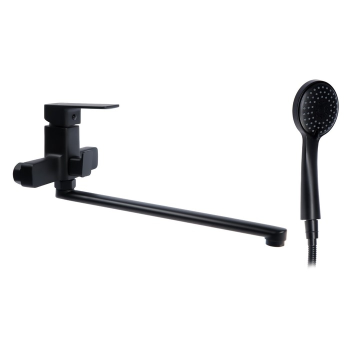 Смеситель для ванны Accoona A71126F, однорычажный, излив 350 мм, душевой набор, черный