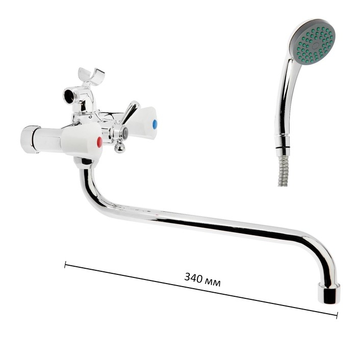 Смеситель для ванны "Центр Сантехники" 15332, двухвентильный, настенный, с душевым набором, хром