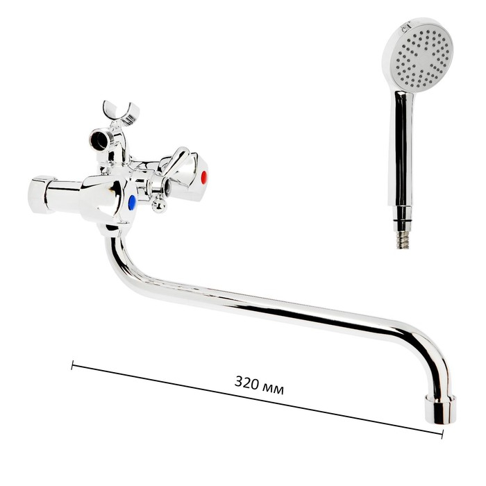 Смеситель для ванны "Центр Сантехники" 3399, двухвентильный, настенный, с душевым набором, латунь, хром