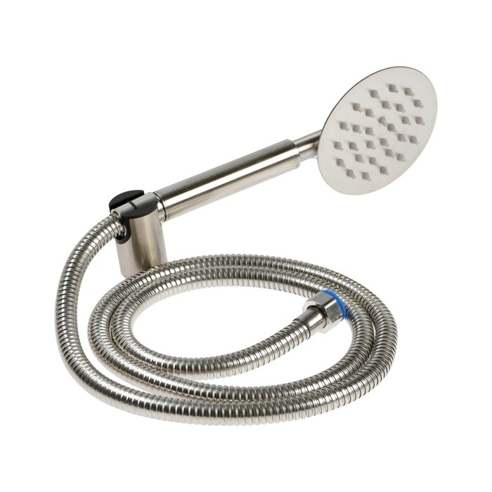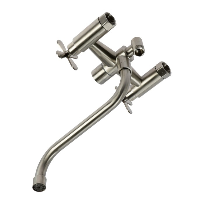 Смеситель для ванны ZEIN Z3733, двухвентильный, S-образный излив 21 см, лейка, шланг, сатин