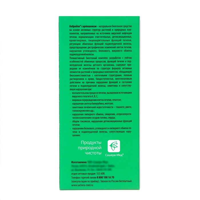 Бобродок с артишоком – полиактивный биогенный комплекс, разработан с учётом особенностей обменных процессов, функций печени и поджелудочной железы детского организма, содержит природную не изменённую по структуре формулу активных элементов растений и природных компонентов, обладающих биосовместимостью с клеточными структурами, полным растворением в крови, биодоступностью, многоплановым действием на причины нарушения функций и состояния печени и поджелудочной железы, симптомы и сопутствующие нарушения при: воспалительном процессе печени, вызванном источниками вирусного гепатита А, В, С. Жировом перерождении клеток печени, гепатозе. Нарушении синтеза билирубина, желтухе. Симптомах печеночной недостаточности – тошноте, рвоте, головокружении и т.д. Нарушении липидного обмена, ожирении, атеросклеротических изменениях сосудов головы, сердца. Общем токсикозе, нарушении детоксикационных функций печени, хронических воспалительных процессах, нарушении функций и состояния органов пищеварительной системы, нарушении состава микрофлоры кишечника, гнилостных процессах, диспепсии, метеоризме. Нарушении белкового, углеводного и липидного обмена печени и поджелудочной железы, сопутствующих нарушениях. Нарушении оттока желчи. Нарушении пищеварительных процессов. Повышенном образовании липопротеидов низкой плотности, превышении их количества в крови и тканях и сопутствующих изменениях. При лекарственном токсикозе печени. При пищевом токсикозе печени.