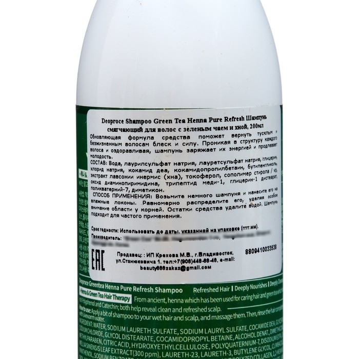 Смягчающий шампунь для волос Deoproce с зеленым чаем и хной предоставляет вашим волосам необходимый уход, придавая им мягкость, здоровый вид и естественный блеск.