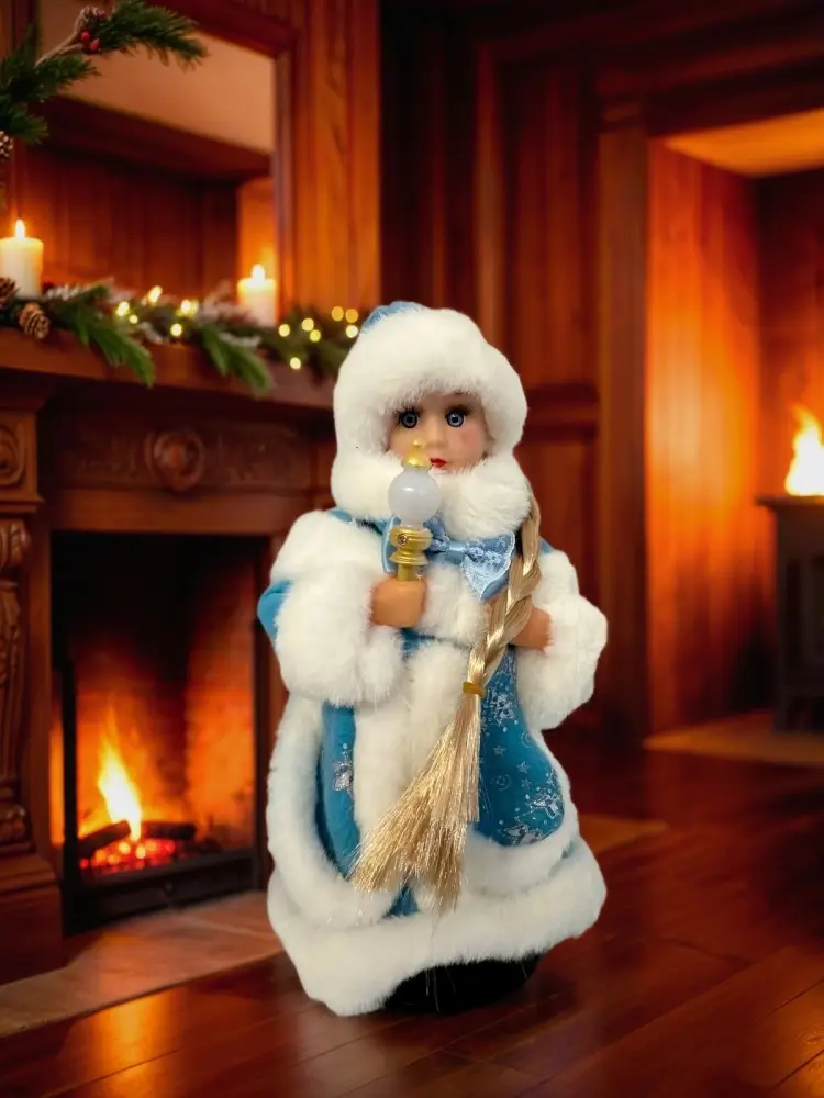 Наша поющая игрушка работает от трех батареек типа АА и дарит вам мелодии, способные погрузить в мир волшебства. Украсьте дом или камин, а также поставьте Снегурочку под елку — она привлечет внимание и станет центром вашего новогоднего убранства.