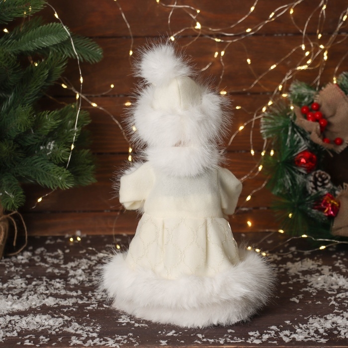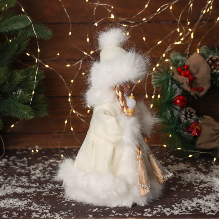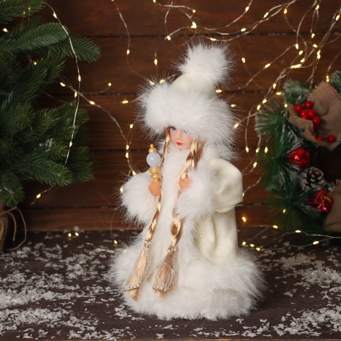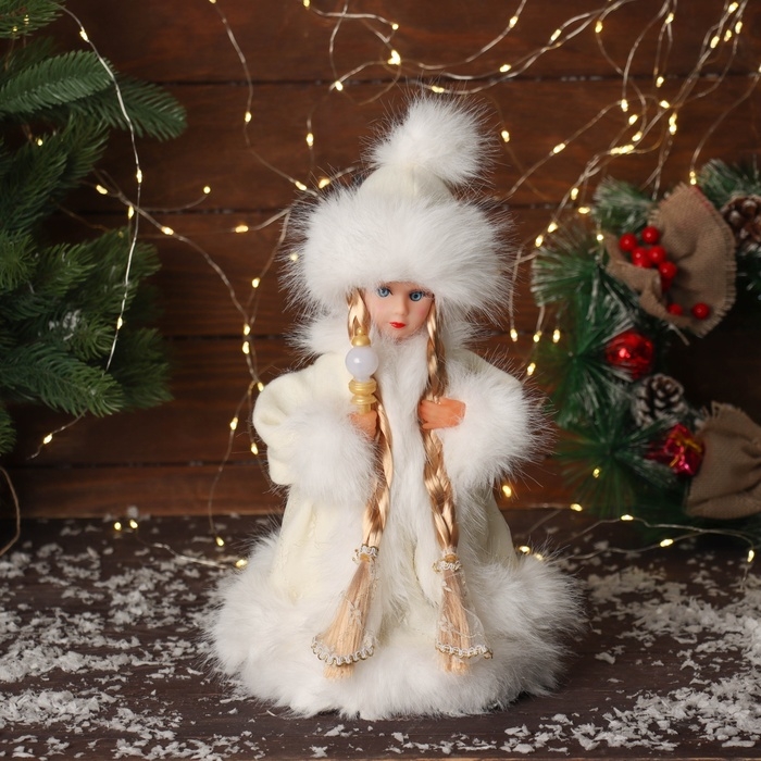 Снегурочка "В пушистой шубке, с фонариком" двигается, с подсветкой, 30х18 см, молочный