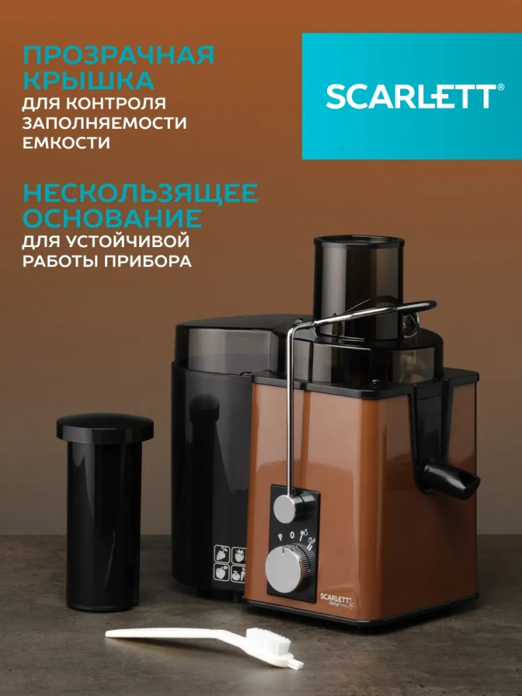 Мощная соковыжималка SC-JE50S57 1000 Ватт оснащена сетчатым фильтром из нержавеющей стали, который позаботится о долговечности эксплуатации прибора. Функция антикапля защитит рабочую поверхность от нежелательных пятен. Металлический корпус и легкая сборка, широкая горловина 65 мм для подачи целых фруктов и овощей экономит время и силы. Прозрачная крышка позволит контролировать процесс заполнения ёмкостей. Емкость для сбора мякоти (1000 мл) и емкость для сбора сока (600 мл) в комплекте. Благодаря 2 скоростям и импульсному режиму работы найти идеальный режим для продуктов любой плотности будет легко и просто. Автоматическая блокировка при неправильной сборке позаботится о безопасности использования.
