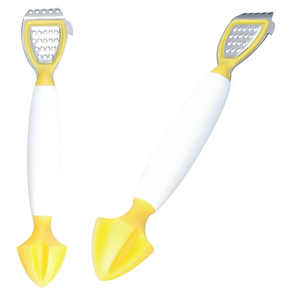 Необходимое приспособление для любителей натурального цитрусового сока и тех, кто следит за своим здоровьем и питанием. С помощью этой соковыжималки вы без особых усилий сможете очистить фрукт, натереть цедру, выжать сок. И все это с помощью одного приспособления: крючок предназначен для надрезания кожуры фрукта, зубцы - для натирания цедры «червячками», терка - для измельчения цедры цитрусовых, соковыжималка – для выжимания сока. Выберите Ваш любимый фрукт и обработайте его с помощью этой соковыжималки 3 в 1.
