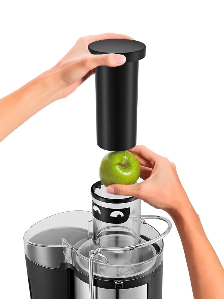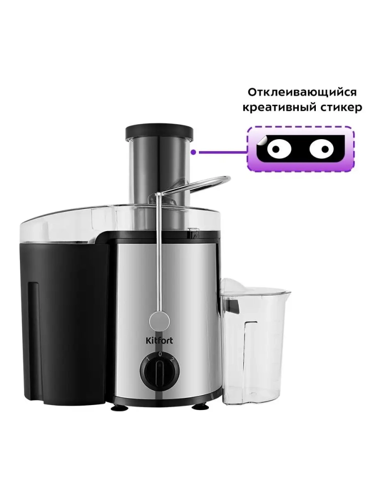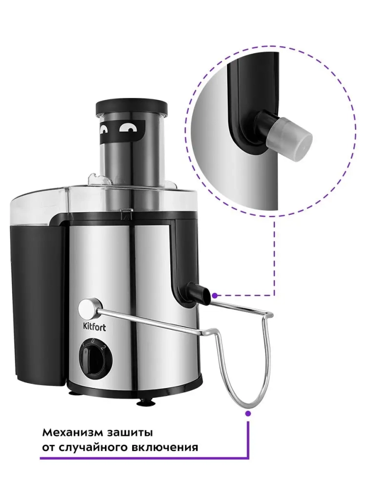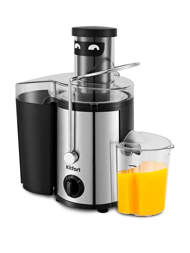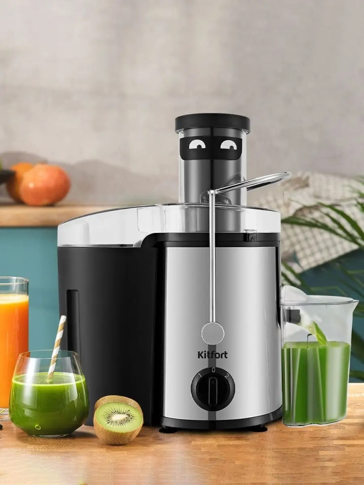 Центробежная соковыжималка Kitfort KT-1127 позволяет отжимать сок из фруктов, овощей и зелени с сохранением всех его полезных компонентов: витаминов, аминокислот и минералов. Соковыжималка легко собирается и просто моется после работы. В центробежной соковыжималке используется технология отжима сока при помощи центрифуги. Продукт сначала измельчается с помощью специальной круговой терки. Затем продукт попадает в фильтр, выполненный по принципу центрифуги, где на высоких оборотах сок отделяется от сухого тертого продукта (жмыха) и подается через патрубок в емкость для сбора сока. А жмых с помощью фильтра сбрасывается в специальный бак. Центробежная соковыжималка позволяет отжимать практически любые фрукты, овощи и зелень. В крышке контейнера для сока предусмотрен щелевой фильтр для отделения пены от сока.
