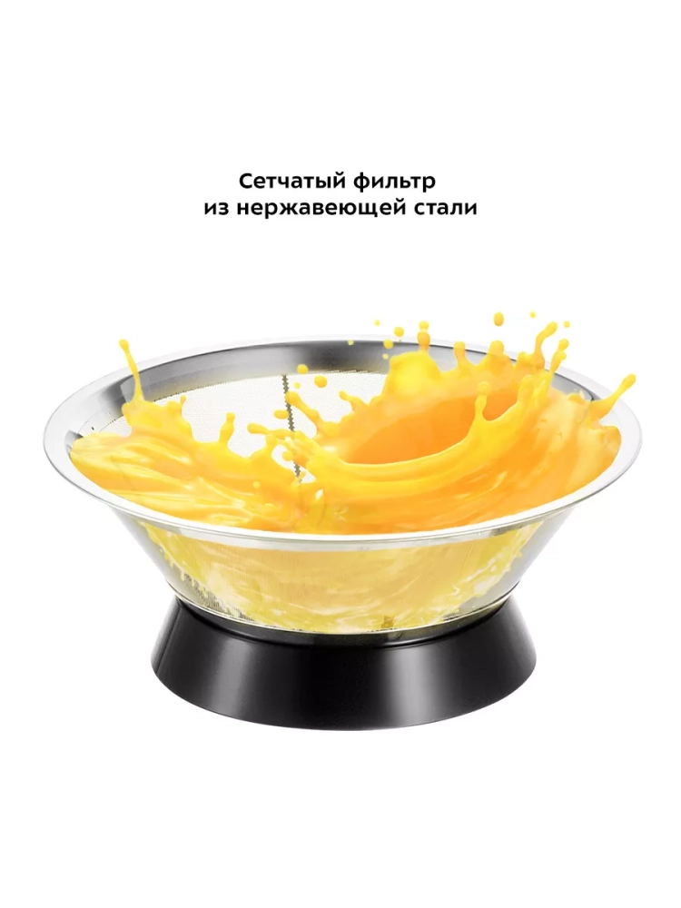 Фильтр сделан из нержавеющей стали, что делает его прочным и не подверженным коррозии. Для мытья фильтра в комплекте предусмотрена щеточка, помогающая вычистить остатки мякоти.