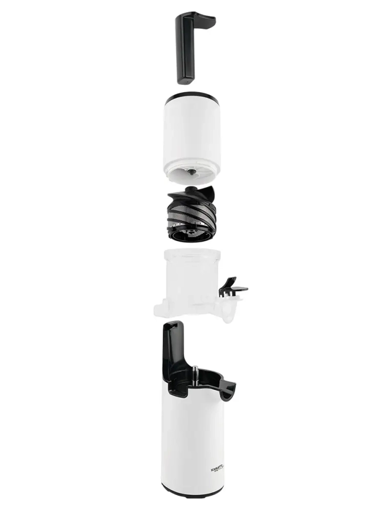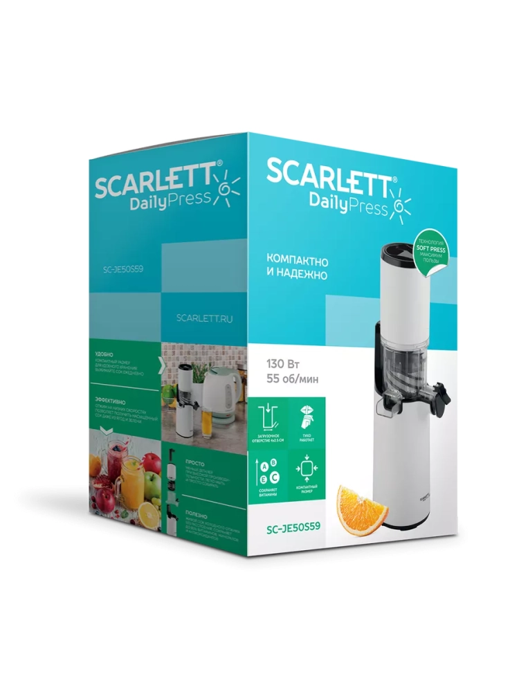 Scarlett SC-JE50S59 прибор для приготовления натурального сока. Устройство выжимает сок при помощи шнека, позволяя извлечь максимум жидкости из фруктов, ягод, овощей и зелени. Соковыжималка работает на малых оборотах и не нагревает перерабатываемые продукты. Благодаря этому сок не окисляется и сохраняет все полезные свойства. В комплекте есть 2 резервуара для сока (600 мл) и для жмыха (600 мл). Во время работы устройство не скользит по поверхности за счёт прорезиненных ножек. Компактный размер прибора позволяет хранить его на столешнице для ежедневного использования.