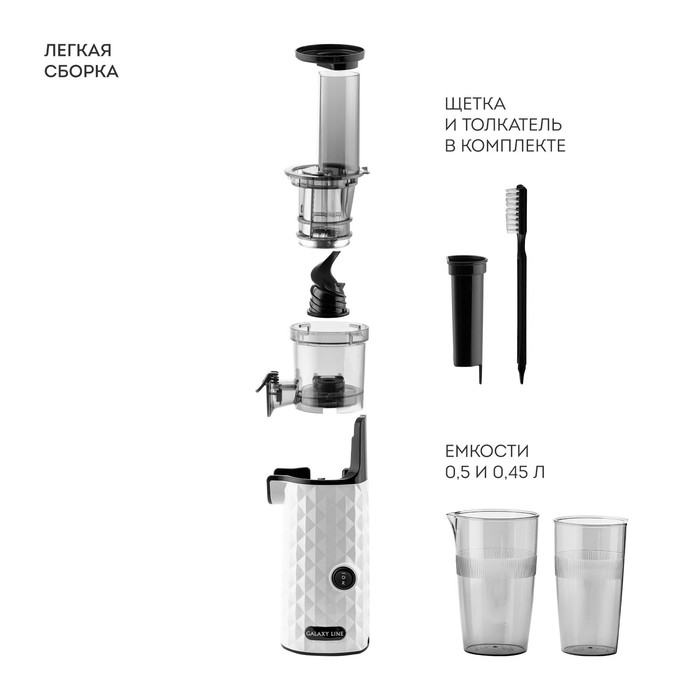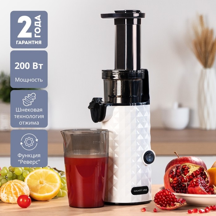 Соковыжималка Galaxy LINE GL 0807, шнековая, 200 Вт, 0.5/0.45 л, реверс, чёрно-белая