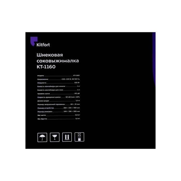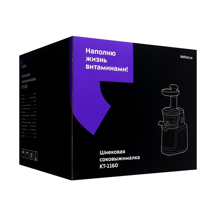 Соковыжималка Kitfort КТ-1160, шнековая, 150 Вт, 1/1 л, 50 об/мин, оранжево-чёрная