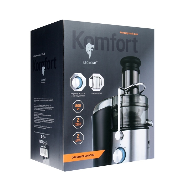 Соковыжималка Leonord LE-1726, центробежная, 800 Вт, 1.1 л, 2 скорости, серебристая